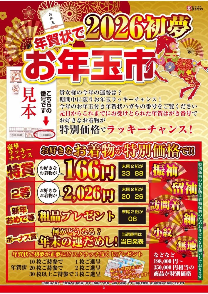 必ず、年賀状をご持参してお越しくださいませ。