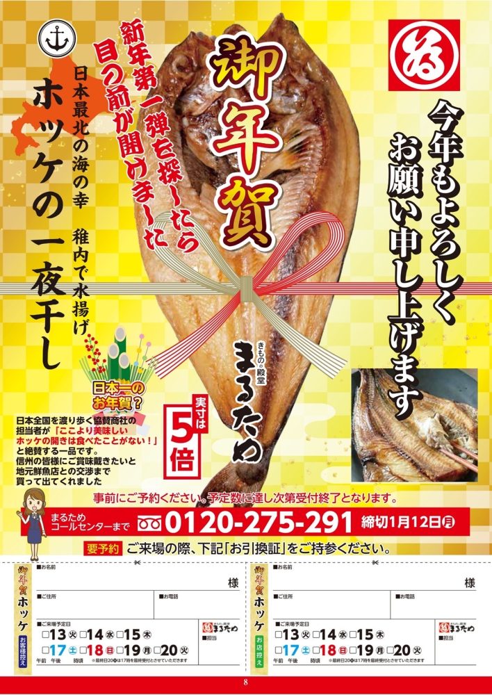 ご来場いただいたお客様へは、まるためより年賀状もお渡しさせていただきます。